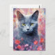 Russian Blue cat colourful watercolor artwork Postcard