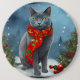 Russian Blue Cat in Snow Christmas 6 Inch Round Button
