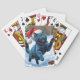 Russian Blue Cat Running Snow with Christmas Hat Playing Cards