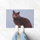 In this adorable photo of a lovely Russian Blue cat, the kitty turns to look wistfully at you. The fluffy cat is printed against a soft, pale blue faux paper textured background. Add your name in the text field on this page to personalize your cat gift, or erase the letters for the full effect of the cat's meow.