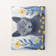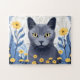 Russian Blue Cat Yellow Flowers Jigsaw Puzzle