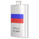The product is a good size and came exactly as it was pictured. The lid is not attached to the flask, which could be dangerous on drunken nights... The print came out surprisingly well and looks very sharp. Would definitely recommend.
