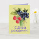 A Happy Birthday card with colourful berries. Card says "С Днём рождения! " in Russian language to wish a happy birthday. Inside of card is in English. It wishes happy birthday and also says "May your life blossom and be filled with all good things!" открытка на день рождения. персонализированная открытка