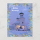 An evening in winter creates a softened view of the Russian Orthodox church on Unalaska Island. One bell tower is lit with Christmas lights and the other bell tower is waiting to be turned on. It is a few days before Christmas day on the Russian caldendar, which is January 7th. The snowflakes on the border are colored in gold and blue, with a blue and lavender border which blends with the background of the photo of the church. It is a holy night, a night of prayer and contemplation. The caption reads: Holiday Blessings!