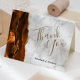 This elegant modern wedding thank you card features a watercolor agate border in shades of burnt orange and rust, trimmed with faux gold glitter. The customizable text combines the words "Thank You" in gold-colored handwriting script and the names of the bride and groom in black italic font on a gray and white marble background.