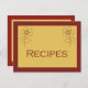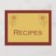 This fun recipe card has a rust or brick red and tan design with simple flowers. It's a perfect way to record your favourite recipes...or share with friends and family...a great gift would be a pack for the new bride, first-time homeowner, or a young adult moving out on his/her own for the first time.