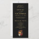 This elegant wedding program features a dramatic black background with a rich watercolor bouquet in rust, burnt orange, and earthy botanical tones. The text is beautifully arranged in a classic layout, blending modern typography with seasonal charm. The back side offers space for your ceremony details, wedding party, and a special thank you message.