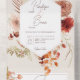 ALSO AVAILABLE WITH A QR CODE TO SCAN IN THE RSVP AREA OR WITHOUT DINNER SELECTION OPTIONS. This design features a burnt orange rust, peach, brown and cream watercolor fall boho floral corner bouquet geometric frame on an off white cream background. Personalized All-In-One invitations are a unique combination of both a beautifully printed custom invitation with an easy to tear off perforated RSVP postcard. And they are so easy to use! You simply fold, then seal the back flap with the three included clear stickers, and mail. And when your guests receive your custom invite, they just tear the perforated RSVP Card off and drop it back in the mail to you!