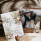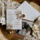 The double-sided design allows you to showcase your favourite engagement photo on the back, framed by elegant rustic accents. Perfect for desert weddings, autumn celebrations, or outdoor woodland ceremonies, this template is fully customizable.