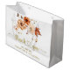 Rust Fall in Love Gold Foil Cream Wedding Favour Large Gift Bag. Rustic floral pumpkins wedding favour gift bag with hand painted watercolor flowers, pumpkins, fall leaves and gold "thank you" text. Matching items available.