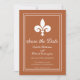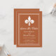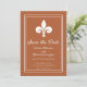 Elegant and simple Wedding save the date invite featuring a fleur de lis against a rust background. This design is a unique choice for announcing a modern wedding. Easy to customize with your wedding details. Click "Customize It" to find more personalization options.