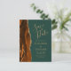 This elegant modern save the date postcard features a burnt orange and rust watercolor agate border trimmed with faux gold glitter. Easily customize the gold-coloured text on a dark emerald green background. On the reverse side, edit the customizable return address and enter your wedding website URL to generate a QR code your guests can scan to learn more about your upcoming event.