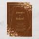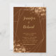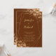 Our stunning rust terracotta wedding invitation featuring accents of champagne-hued bokeh lights is sure to wow your guests. The geometric gold frame brings elegance to this modern invite shimmering with bokeh sparkles.