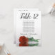 These beautiful table number cards will make it easy for your guests to find their seats at your wedding reception. They feature a simple yet elegant design with script calligraphy lettering and a single long-stemmed rust orange or burnt umber coloured rose lying on its side reflecting in water. The card includes a seating chart with 10 names. There is also space for the couple's names and wedding date. This card is available in a variety of sizes and is larger than our standard table number cards.