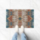 Rust Orange Taupe Brown Teal Blue Tribal Art Doormat