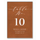 rust painted elegant script text wedding table numbers. Part of a modern, minimal, elegant wedding collection. Available in different colour ways.