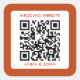 rust orange retro modern minimalist wedding qr code stickers with you wedding website qr code and your bride and groom name. Easy to use on any window, car or on your party bags as labels to say thank you to your wedding guests. The perfect promotional sticker for any wedding or birthday party and to let your guests know where you have your wedding information. It is a scannable sticker that can be used as a envelope seal for your wedding invitations.