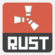 RUST symbol in Clear on a Red background, white RUST on black.