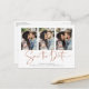 Modern Handwritten Save the Date Multiple Photo Post Card Card in rust terracotta and white in a font that is elegant and evokes a romantic handwritten feel. Designed to use three of your favourite photos for added customization. Easily add your names and dates for a truly personalized design. Please contact us at cedarandstring@gmail.com if you need assistance with the design or matching products.