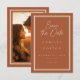 Celebrate your love with this minimalist rust terracotta wedding photo save the date card design. It's perfect for a rustic autumn ceremony. This earthy, modern look offers a warm and sophisticated feel for your autumn hue wedding. Created by Simply Farmhouse Press.