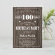 Rustic 100th Birthday Invitation. White Typography. Rustic Wood Background. Adult Birthday. Male Men or Women Birthday. Kids Boy or Girl Lady Teen Teenage Bday Invite. 13th 15th 16th 18th 20th 21st 30th 40th 50th 60th 70th 80th 90th 100th. Any Age. For further customization, please click the "Customize it" button and use our design tool to modify this template.