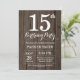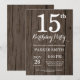 Rustic 15th Birthday Invitation. Rustic Wood Background. Vintage Retro Birthday. Kids Birthday. Boy or Girl Bday Invite. 13th 15th 16th 18th 20th 21st 30th 40th 50th 60th 70th 80th 90th 100th, Any age. For further customization, please click the "Customize it" button and use our design tool to modify this template.