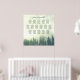 This beautiful wedding seating chart has table assignments for 160 guests at 16 tables (10 people per table.) The design is rustic yet elegant with a mountain hillside shrouded in mist or fog and covered with green pine trees. There is a lacy script calligraphy title reading "please find your table" as well as space for the names of the couple and the wedding date. Perfect for an outdoor or mountain destination wedding.