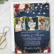 Rustic 3 Photo Burgundy Floral Lights Wood Wedding Invitation