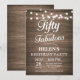 Rustic 50th Birthday Invitation with String Lights Wood Background. Woman Birthday Party. Fifty and Fabulous. Any age. For further customization, please click the "Customize it" button and use our design tool to modify this template.