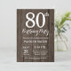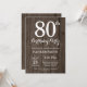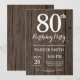 Rustic 80th Birthday Invitation. Rustic Wood Background. Vintage Retro Birthday. Adult Birthday. Men or Women Bday Invite. 13th 15th 16th 18th 20th 21st 30th 40th 50th 60th 70th 80th 90th 100th, Any age. For further customization, please click the "Customize it" button and use our design tool to modify this template.