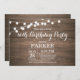 Rustic 80th Birthday Invitation with String Lights Wood Background. 13th 15th 16th 18th 21st 30th 40th 50th 60th 70th 80th 90th 100th, Any age. For further customization, please click the "Customize it" button and use our design tool to modify this template.