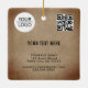 Rustic Add Logo QR code Custom Text Promotion Giveaway Ceramic Ornament. Rustic beige background. Insert your logo, QR code and customize the text, company name, address and contact information. Business promotion and a holiday giveaway.