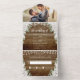 Wedding invitations are the perfect way to showcase your unique style. This rustic all-in-one invitation has a beautiful white bouquet of flowers on the front and can be customized with your own photos, colours, and text. From our rustic collection this invitation is perfect for a countryside wedding.