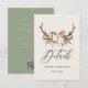 Rustic Antler Floral Wedding Details Card | Boho Woodland Sage Green Information Insert
