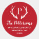 Custom round return address stickers personalized with your family monogram and address. This modern rustic design features your monogram initial with deer antlers in festive red and white colours. Use the design tools to change the background colour and fonts to further customize your own unique design. Perfect for addressing holiday cards, wedding stationery and more.