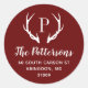 Custom round return address stickers personalized with your family monogram and address. This modern rustic design features your monogram initial with deer antlers in burgundy and white colours. Use the design tools to change the background colour and fonts to further customize your own unique design. Perfect for addressing holiday cards, wedding stationery and more.