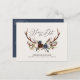 Rustic antlers script navy burgundy floral wedding announcement postcard