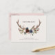 Rustic antlers script navy burgundy floral wedding announcement postcard