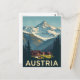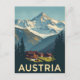 Bring the breathtaking beauty of the Austrian Alps to your home with this vintage-style magnet. It features a stunning illustration of a cozy mountain cabin nestled in a lush valley with snow-capped peaks and a waterfall in the background. This magnet is a perfect souvenir for anyone who loves Austria's majestic landscapes and outdoor adventures. It's a great keepsake to remember a trip or a gift for a friend who dreams of travelling.