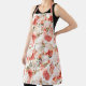 Rustic watercolor Autumn floral arrangements with dark orange citrus fruits pattern print apron and coordinating peach colour straps.