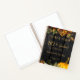 Beautiful rusty orange and dark burgundy autumn fall flowers and pumpkin borders with strings of golden twinkle lights over a dark brown barn wood background making a charming elegant 21st, 30th, 40th, 50th, 60th, 70th, 75th, 80th, 90th 100th (any age) years birthday party guest book with a trendy handwriting gold typography script. +++++++++ Easy to personalize with your details! Suitable for traditional rustic country farmhouse outdoor backyard family and friends gatherings.