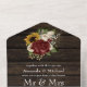 Rustic wedding invitation featuring maroon and white roses and sunflowers with a tearaway rsvp slip.