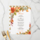 Pretty wedding menu with autumn fall leaves in orange, yellow and green. Perfect for an autumn fall wedding. The words can be changed to suit your own details or requirements.