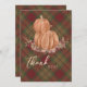 Rustic Autumn Fall Pumpkin Plaid Thank You Card