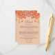 Set the tone for your rustic autumn celebration with this elegant, personalized Fall in Love Wedding details card. Designed with a charming country feel, this card features a botanical arrangement of warm orange, brown, and golden yellow leaves intermingled with pine cones, acorns, and luscious ruby red berries, all set against a soft orange background. The stylish layout is enhanced with modern mocha typography and graceful calligraphy script font, offering a beautiful balance of rustic charm and refined elegance. Perfect for sharing important wedding information, such as accommodation details, directions, or itinerary, this wedding details card complements your Autumn Wedding theme flawlessly. Whether you're planning a countryside celebration or a cozy barn reception, this Fall in Love Wedding insert is a lovely way to keep your guests informed while embracing the beauty of the season.