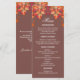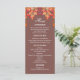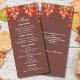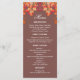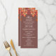 Celebrate the beauty of autumn with this personalized Fall in Love Wedding menu card, perfect for your rustic, country-inspired wedding. Designed with an elegant botanical touch, it features a stunning arrangement of warm orange, brown, and golden yellow leaves, gracefully intertwined with luscious ruby red berries. Set against a warm mocha background, the modern typography and delicate calligraphy script font add a sophisticated yet cozy feel to your autumn wedding. This menu card captures the essence of a dreamy, autumn wedding with a seamless blend of rustic charm and elegant design, making it the perfect addition to your special day.