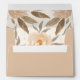 A tan envelope with a printed lining design of elegant autumn watercolor flowers and fall leaves is printed with your FREE return address on the back flap in chic white lettering. MATCHING items in our collection.