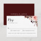 Elegant watercolor Autumn foliage and floral bouquet, wedding RSVP cards. Card features, solid rustic burgundy red colour backing and food allergy note.