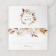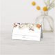 Rustic floral wedding place cards featuring a top border of watercolor fall flowers and foliage in shades of ivory, cream, brown, and orange. The back of the boho floral place cards feature your monogram initials and wedding date encircled by a wreath of autumn flowers and foliage. The elegant floral place cards are perfect for autumn wedding receptions, rehearsal dinners, and other special events.
