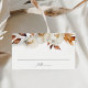 Rustic floral wedding place cards featuring a top border of watercolor fall flowers and foliage in shades of ivory, cream, brown, and orange. The back of the boho floral place cards feature your monogram initials and wedding date encircled by a wreath of autumn flowers and foliage. The elegant floral place cards are perfect for autumn wedding receptions, rehearsal dinners, and other special events.